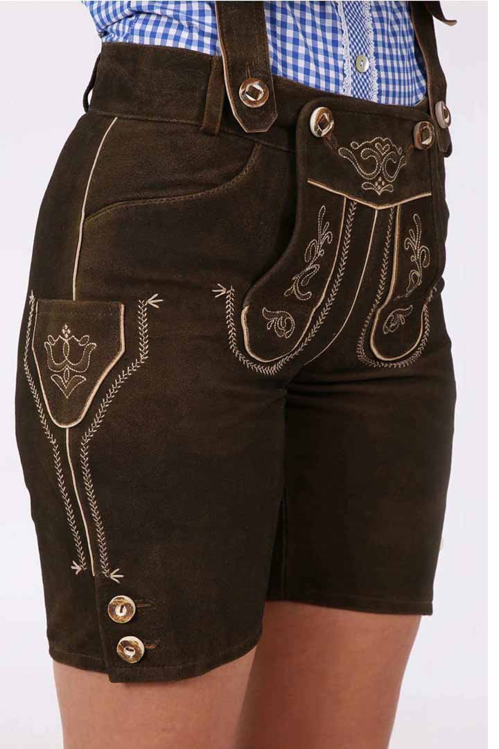 The Alpen Queen Lederhosen from Bavarian Attire is a deep chocolate brown color that gives off a sense of timeless style. The high-quality Goat Suede Leather makes the garment feel smooth and velvety while yet making it strong enough for busy events. Because of this, these Bavarian Lederhosen for Women are both comfortable and stylish.