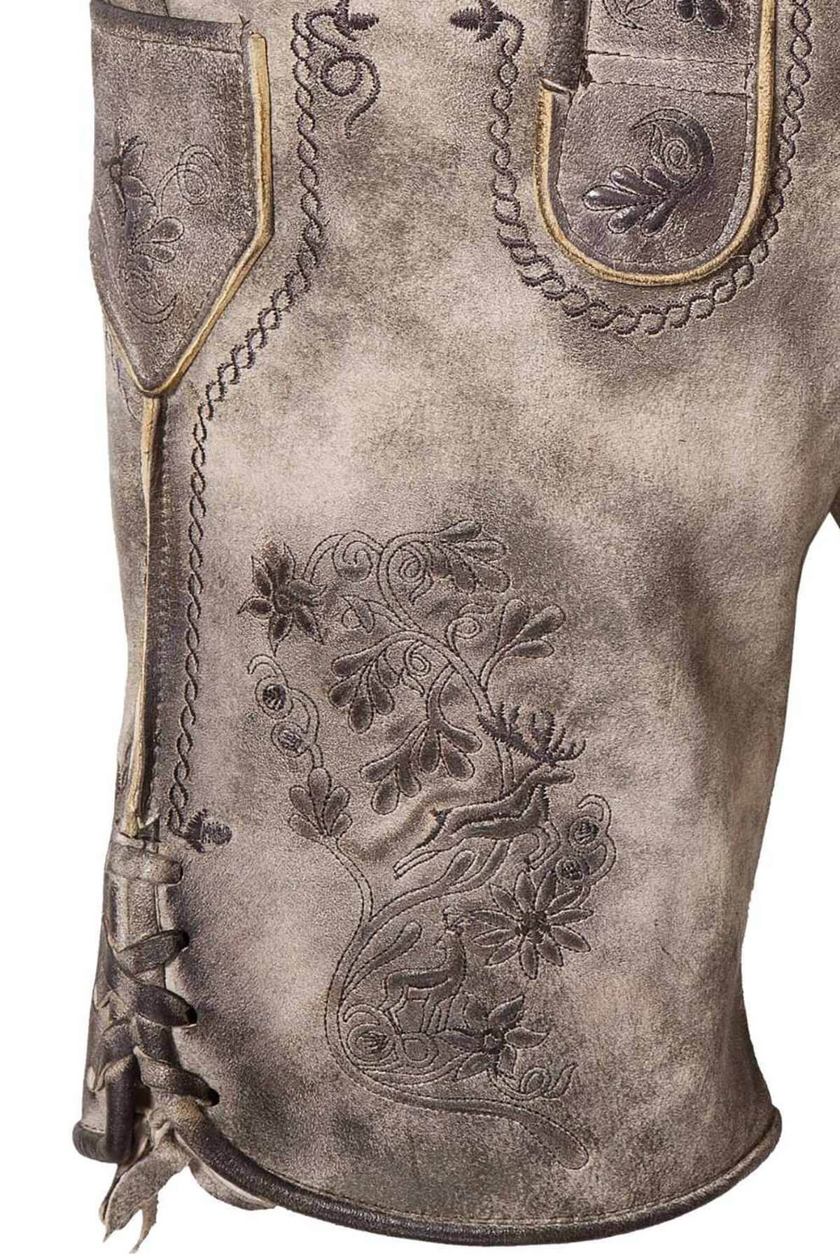Through exquisite craftsmanship, Bavarian Attire’s Bavarian Bliss German Lederhosen combines history and contemporary design. The warm, worn texture of soft goat suede leather is smooth and robust. Furthermore, the darker-hued embroidery blends exquisitely with the smoky taupe-brown hues to create a powerful, genuine presence. The intricate floral designs accentuate the appearance and uphold the essence of a genuine Bavarian outfit.