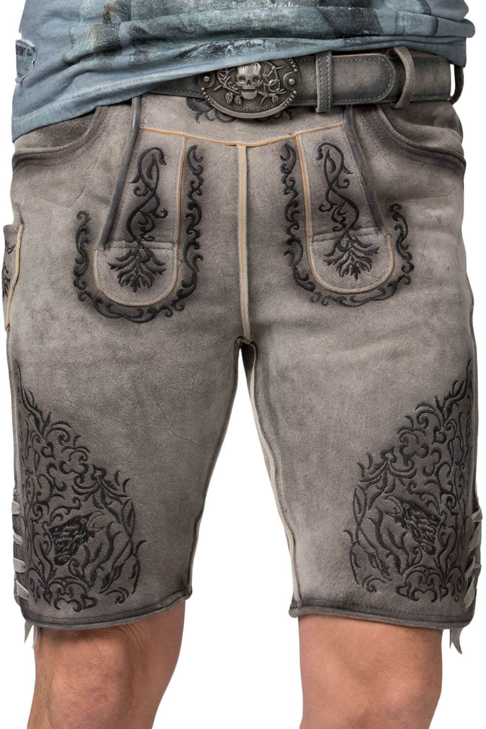 This Boston Lederhosen is made of high-quality goat suede leather, which gives it a delicate, velvety feel and strong strength. Also, the suede that breathes feels silky against the skin and keeps you comfortable all day. Its stone gray color has soft, weathered shading that gives it depth and character. Fine stitching makes the surface look better while keeping the conventional look tidy.