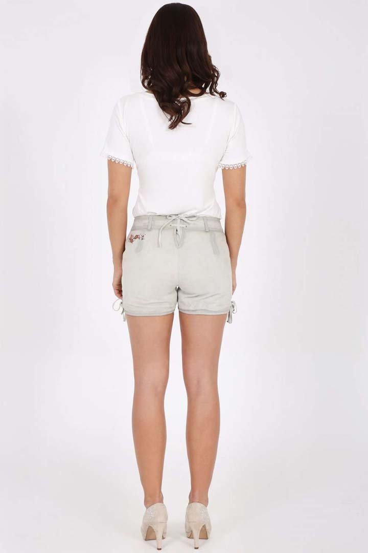Firstly, this Bavarian Lederhosen for Women features premium goat suede leather with a velvet-soft feel. The pale sage-grey shade offers a refined alternative to darker tones. Moreover, the supple leather moves naturally with the body while maintaining a structured, high-quality shape and lasting comfort.