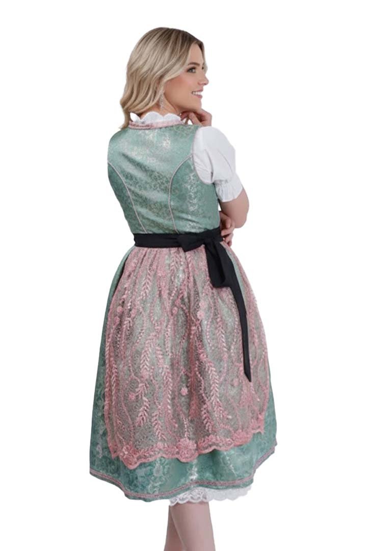The Franziska Knuppe Dirndl by Bavarian Attire is meticulously crafted from premium, breathable cotton to ensure maximum comfort during long festivities. This German Dirndl Dress features a stunning sage green bodice and skirt, beautifully complemented by a delicate lace-overlay pink apron. Consequently, the soft natural fibers feel gentle against the skin while maintaining a structured, high-quality finish for authentic Oktoberfest Dirndl styling.