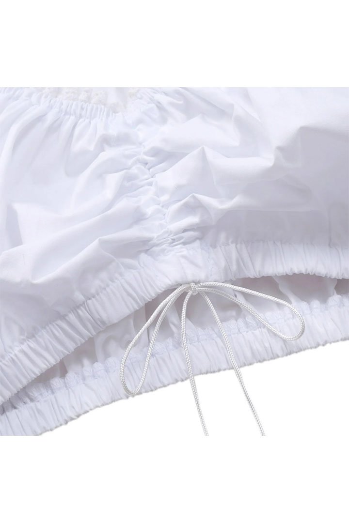 - Extras: Lace trim and ribbon tie front