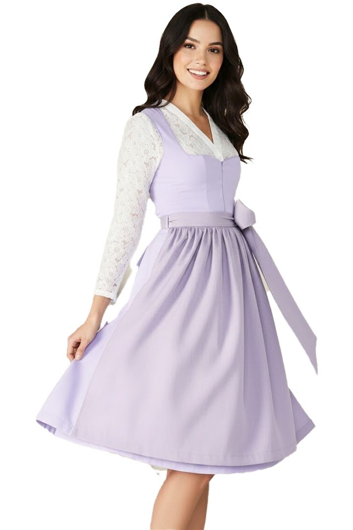 The Jule Nagel Dirndl captures a refreshing aesthetic with its stunning pastel lavender hue. This Dirndl Dress is meticulously crafted from premium cotton, offering a soft, breathable texture that ensures comfort throughout the day. Because the fabric remains lightweight, it feels gentle against the skin while maintaining a crisp, polished appearance.