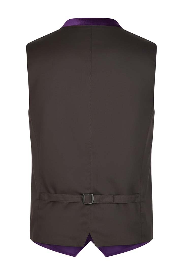 This vivid purple velvet vest is the pinnacle of luxury. Designed for the contemporary gentleman, it adds a classy touch to any traditional or formal suit with its elegant silver buttons and sleek stand-up collar.