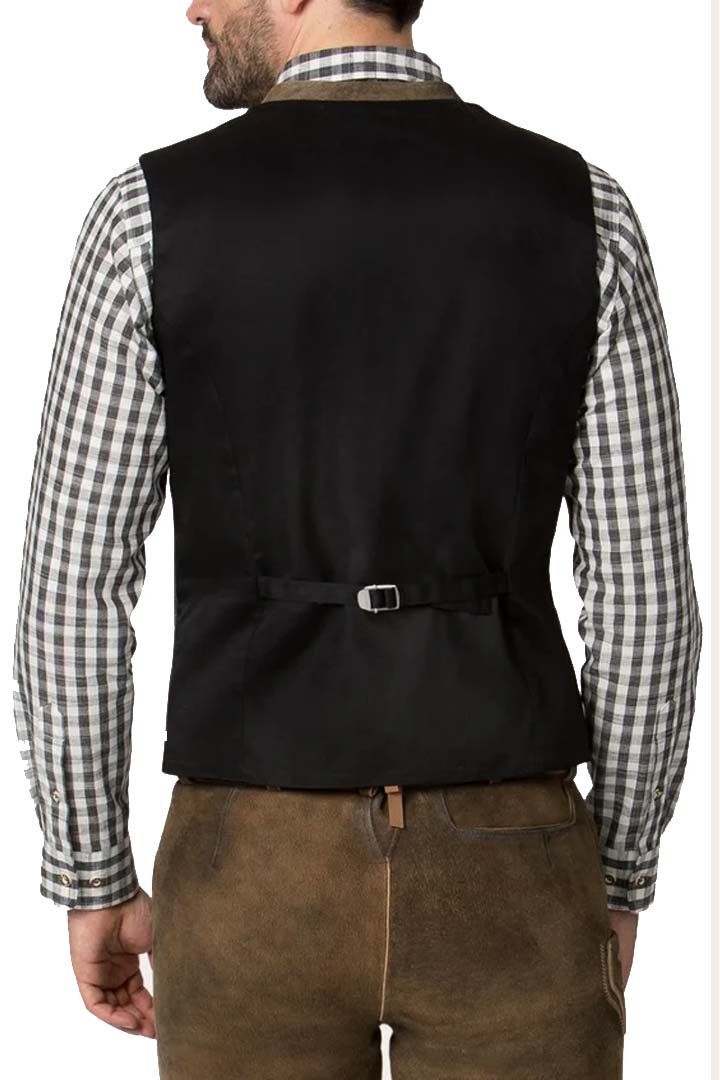 This vest with horn-style buttons and classic contrast piping exudes luxury. Its high-quality fabric and precise design create an exquisite Alpine style that is appropriate for both formal and festive occasions.
