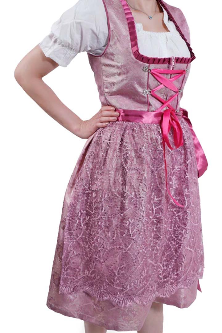 This exquisite German Dirndl Dress captures Alpine tradition with vibrant dusty rose and magenta tones. The bodice uses breathable cotton to deliver a smooth, structured feel and all-day comfort. Moreover, a delicate floral lace overlay enriches the skirt with luxurious visual depth. Meanwhile, satin ribbon lacing adds a subtle shimmer that contrasts beautifully with the matte fabric.